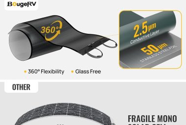 Get the most flexible and durable solar panel on the market with BougeRV Yuma 100W Compact CIGS Solar Panel. Lasts 25 years, easy installation, and waterproof.